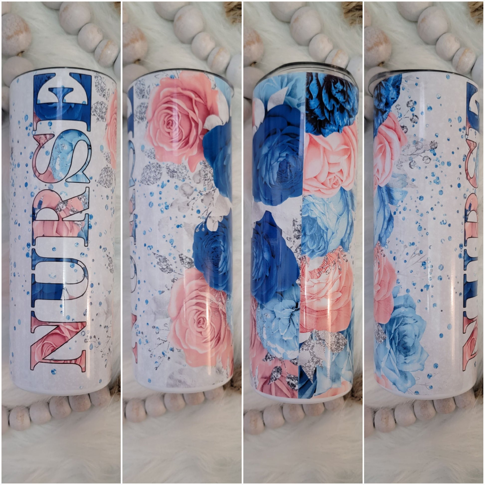 20oz Blue and Pink Flower Nurse Tumbler