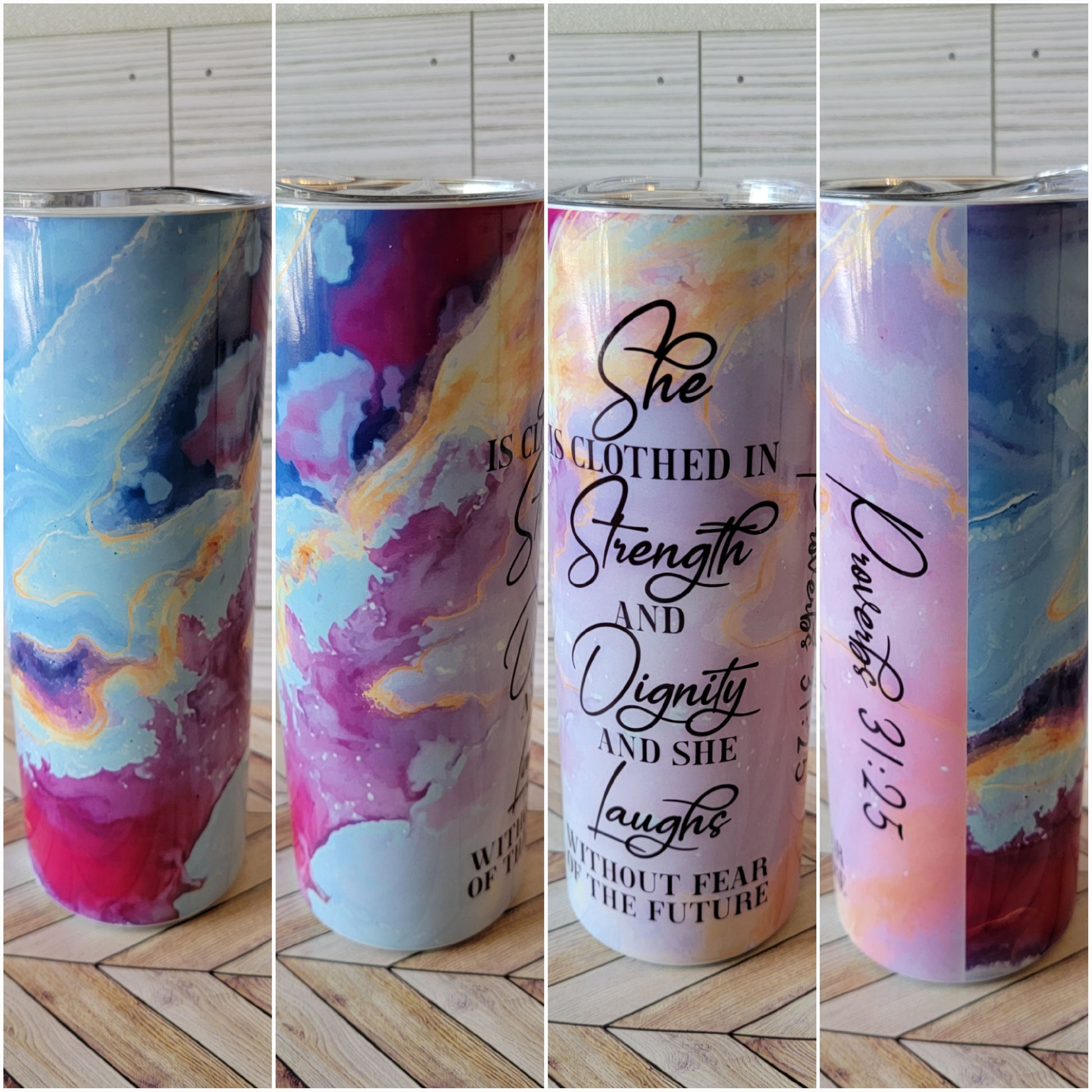 20oz Proverbs 31:25 She is Clothed Tumbler