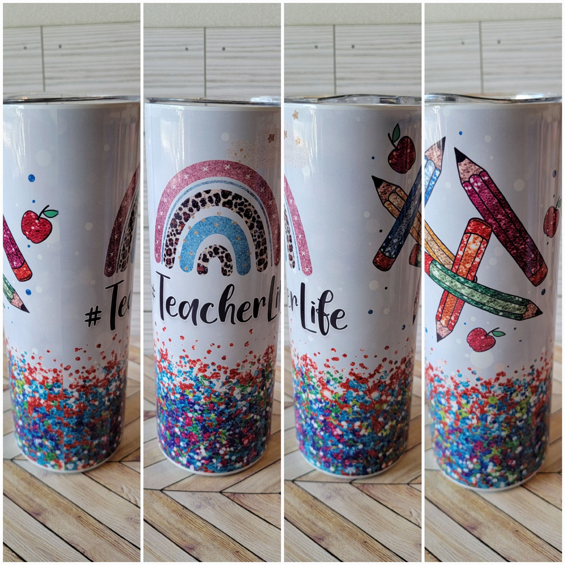 This 20oz tumbler is perfect for a teacher gift! They are eco-friendly and reusable and keep beverages cold for up to 12 hours.