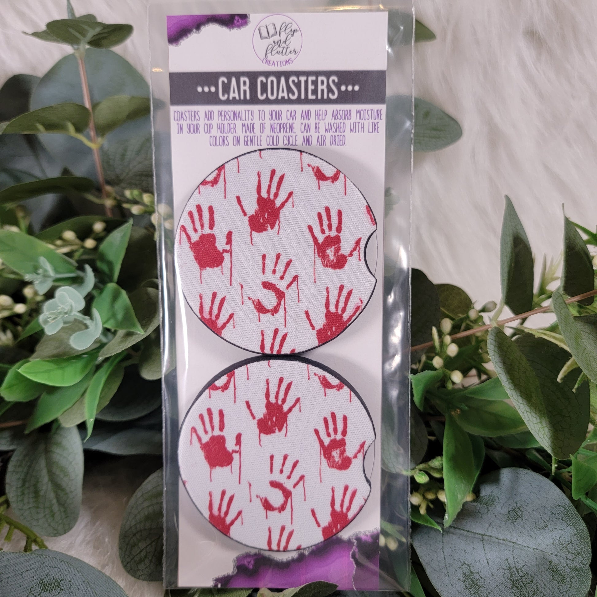 These car coasters provide an ideal touch for any vehicle. Featuring neoprene material and a size that fits most vehicle cup holders, these coasters offer quality and durability.