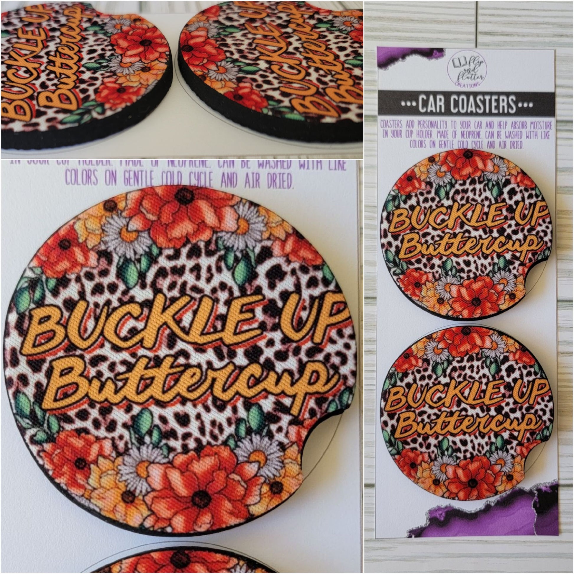 These car coasters provide an ideal touch for any vehicle. Featuring neoprene material and a size that fits most vehicle cup holders, these coasters offer quality and durability.