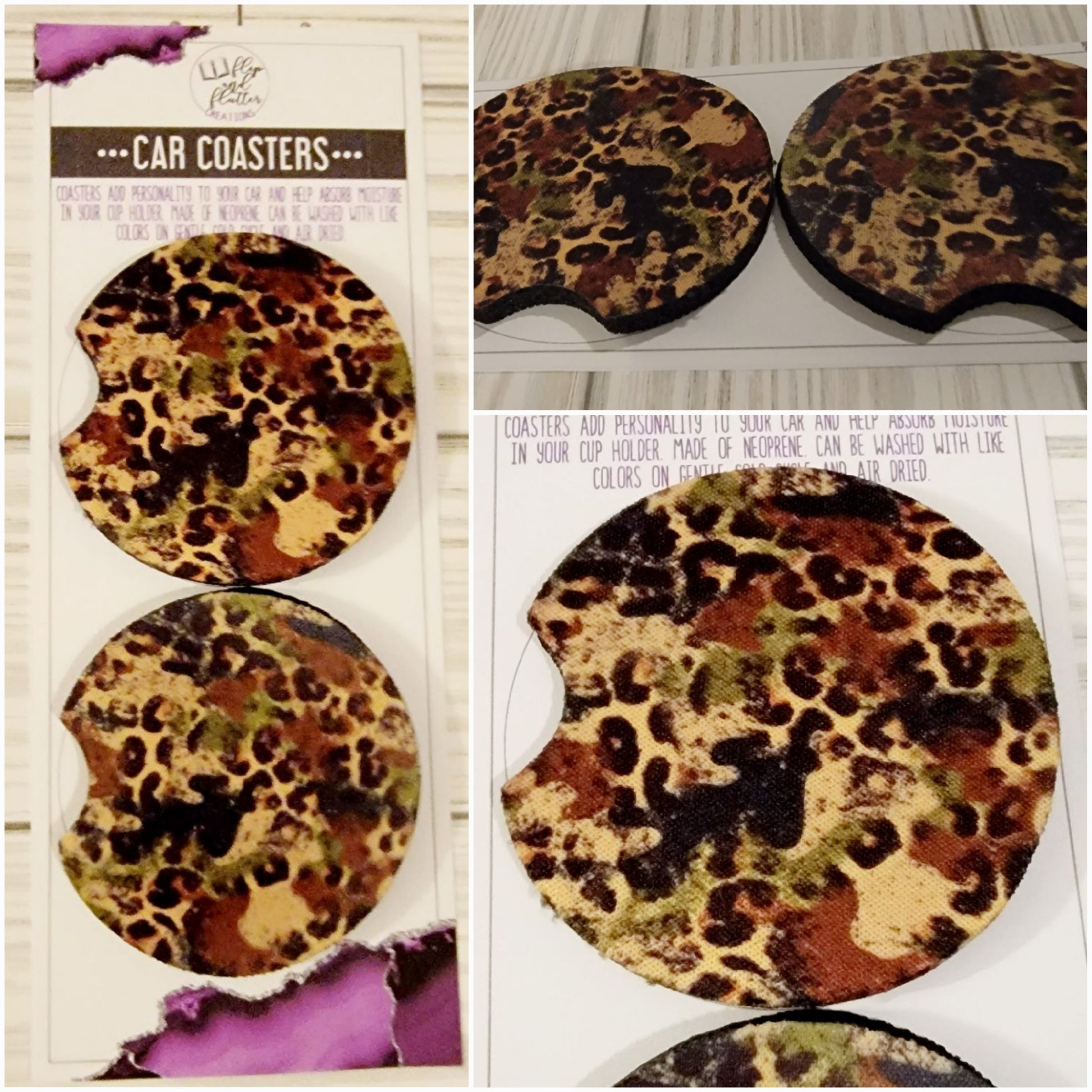 These car coasters provide an ideal touch for any vehicle. Featuring neoprene material and a size that fits most vehicle cup holders, these coasters offer quality and durability.