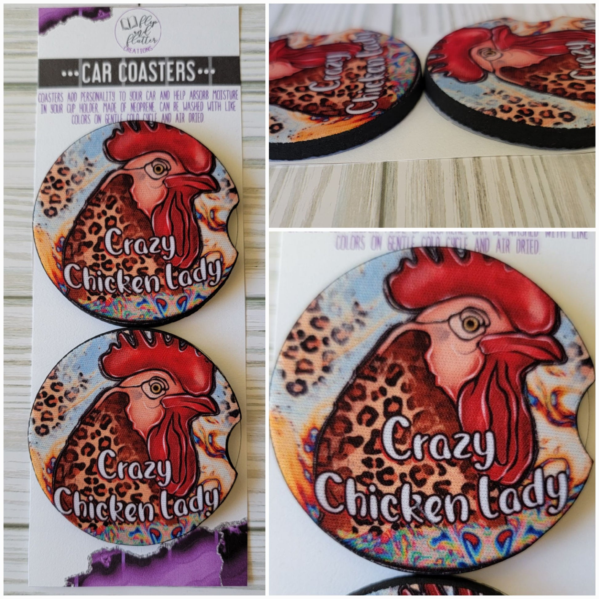 These car coasters provide an ideal touch for any chicken enthusiast's car. Featuring neoprene material and a size that fits most vehicle cup holders, these coasters offer quality and durability.