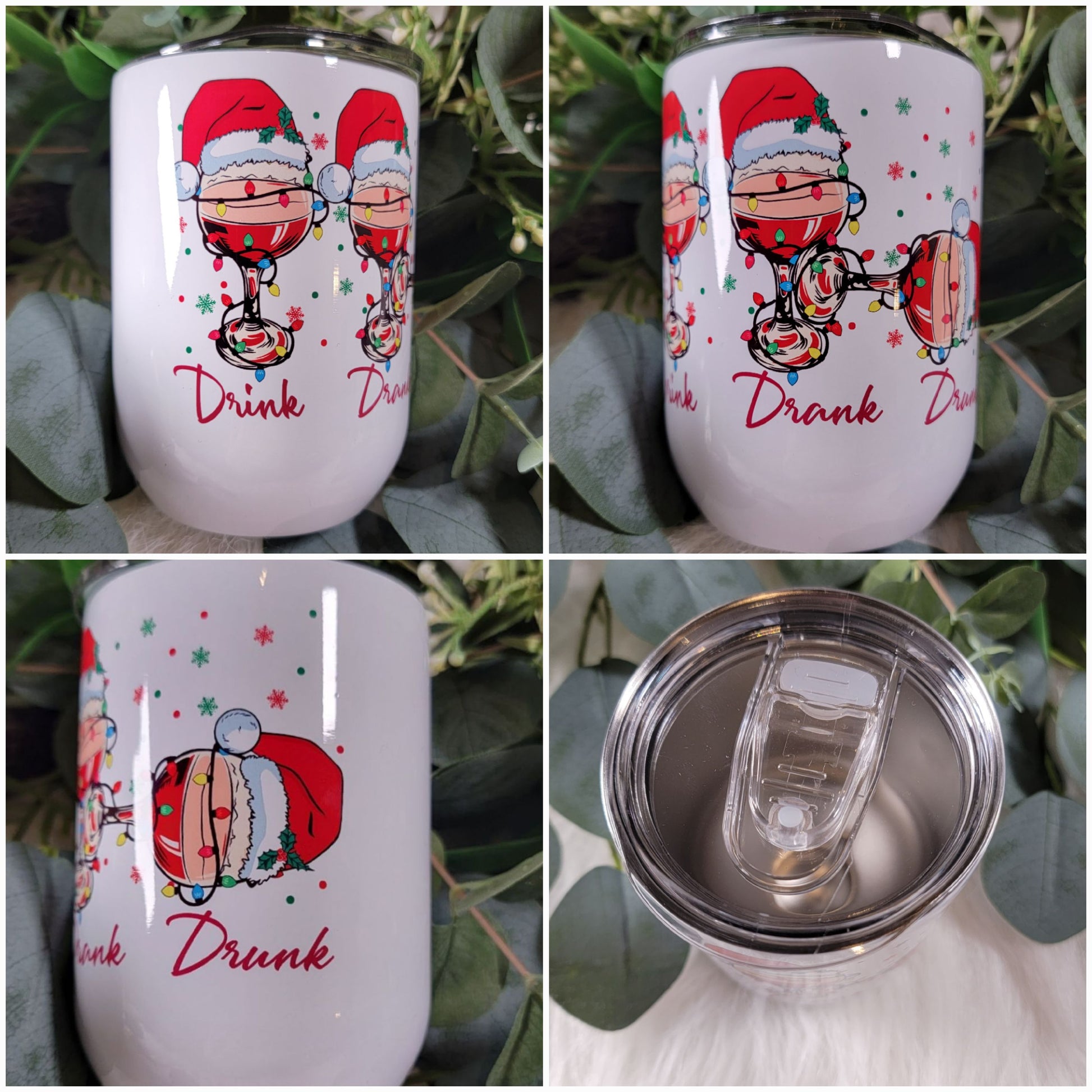Wine tumblers are the perfect addition to any kitchen. This Drink, Drank, Drunk wine tumbler is perfect for the holidays! They are eco-friendly and reusable and keep beverages cold for up to 12 hours.