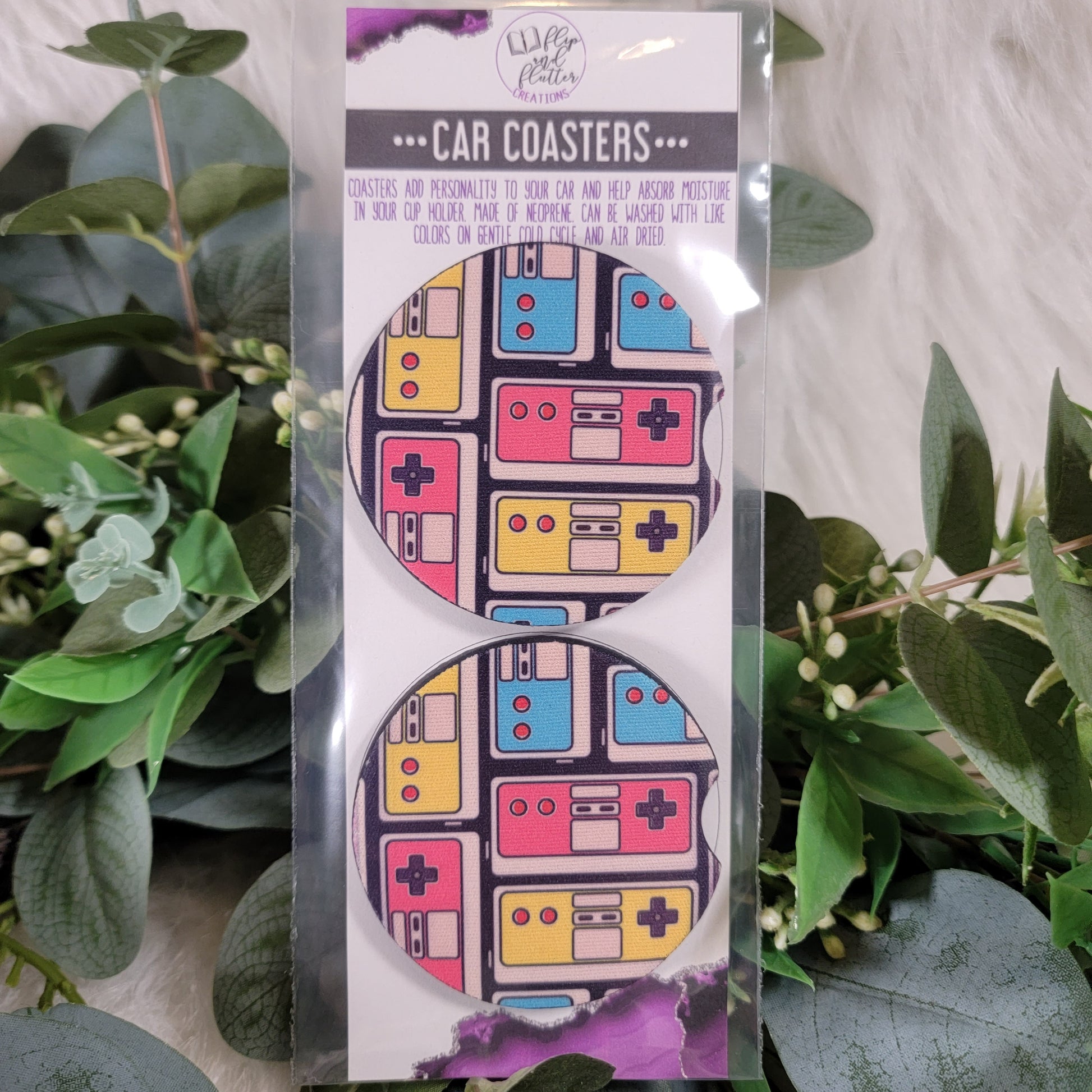 These car coasters provide an ideal touch for any vehicle. Featuring neoprene material and a size that fits most vehicle cup holders, these coasters offer quality and durability.