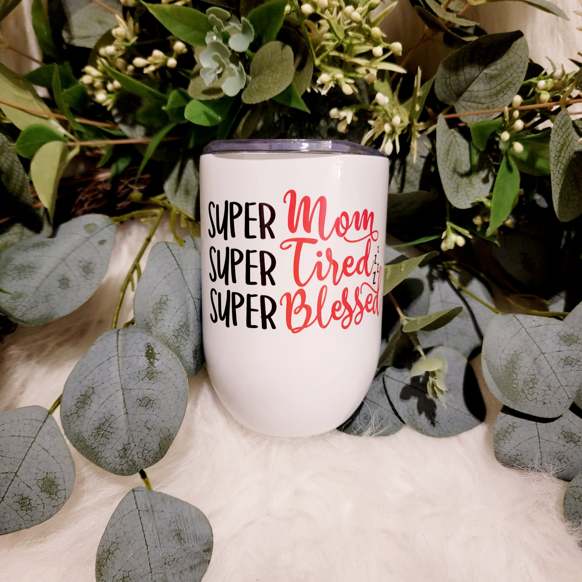 Super Mom, Super Tired, Super Blessed - Wine Tumbler
