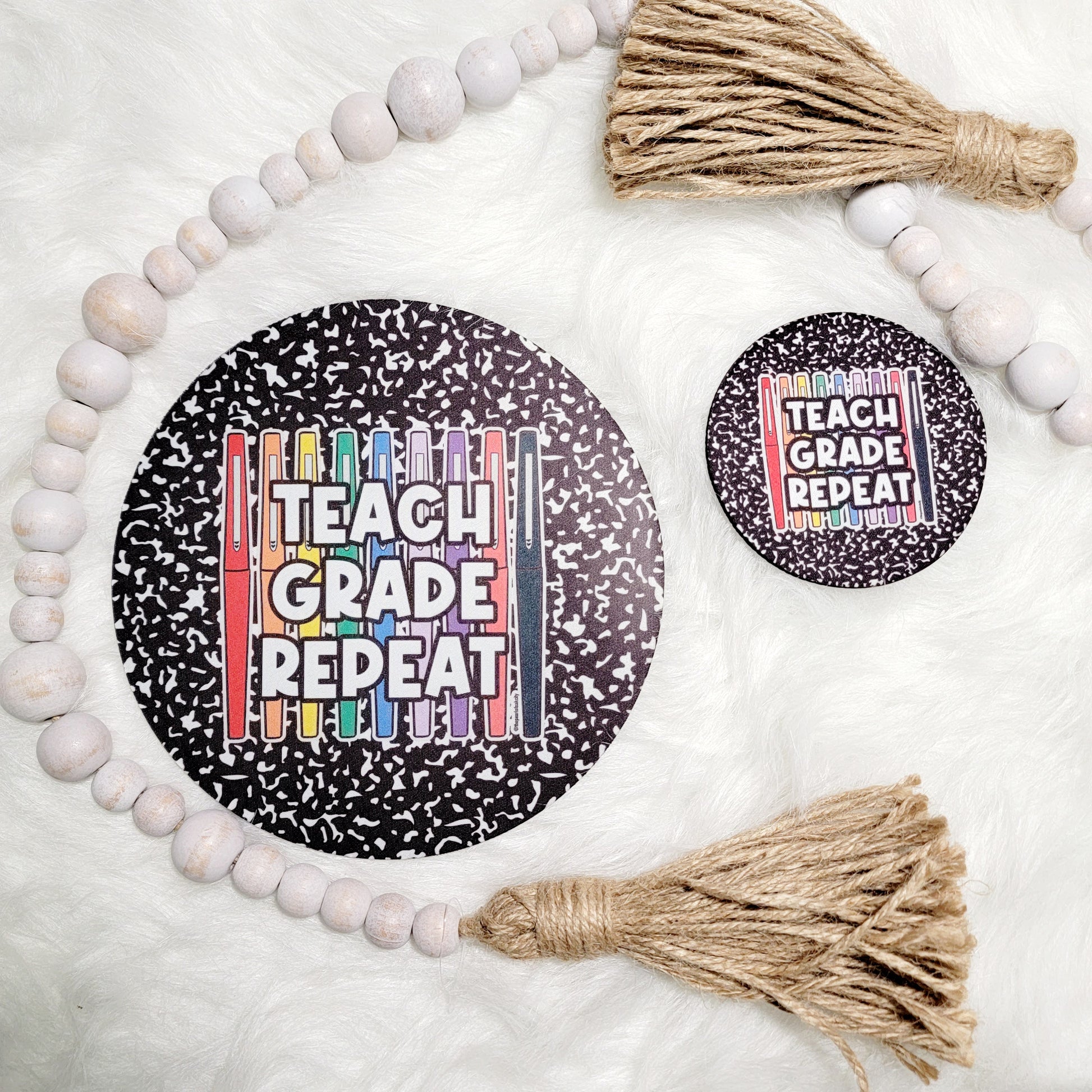 Teach, Grade, Repeat Mousepad and Coaster Set